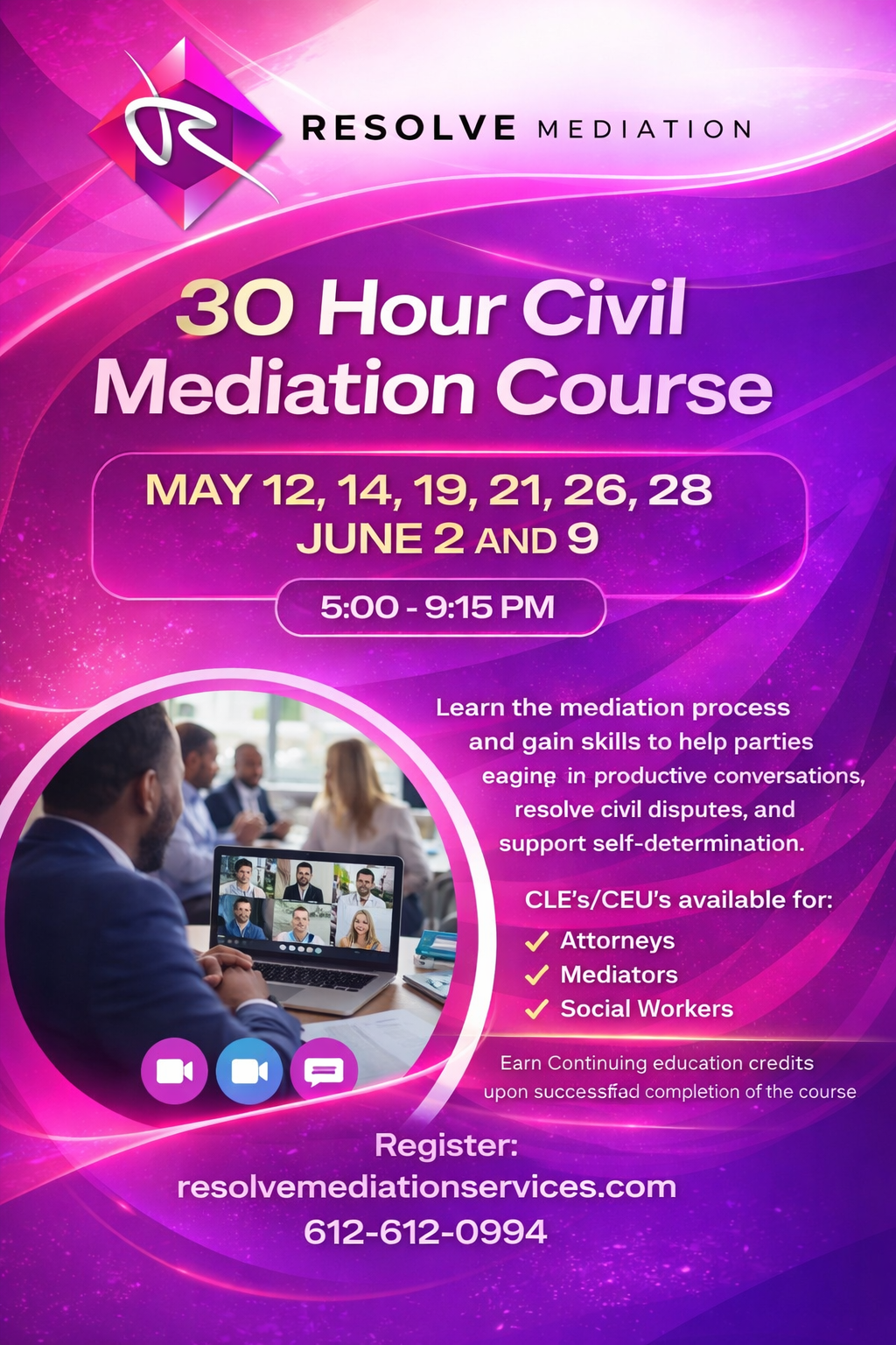 At Resolve Mediation Services, our mission is to empower individuals and communities to resolve conflicts with dignity, understanding, and compassion. We are dedicated to providing accessible, culturally responsive mediation that promotes healing, restores relationships, and strengthens community connections. Through active listening, equity-centered practices, and a commitment to justice, we help create pathways toward peace and lasting resolution.